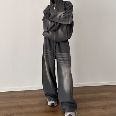 Washed Straight Loose Casual Pants Elastic Waist Drawstring Sports Pants Sweatpants