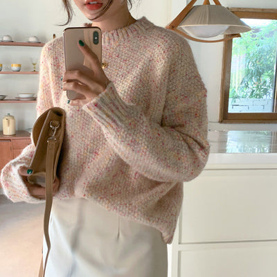 Women's Round Neck Single-breasted Loose Long-sleeved Knitted Sweater