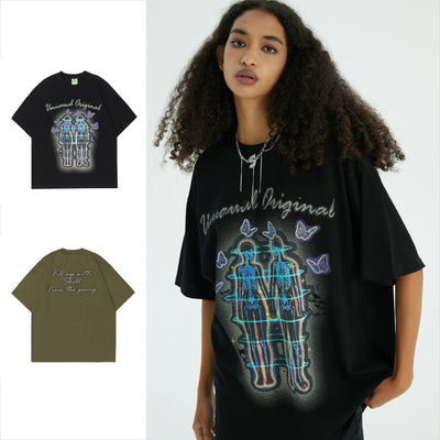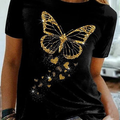 Butterfly Print Crew Neck Short Sleeve T-Shirt
