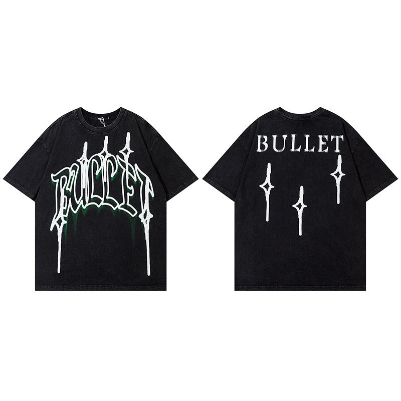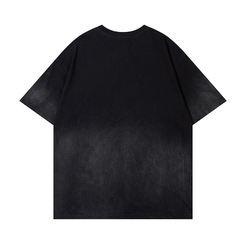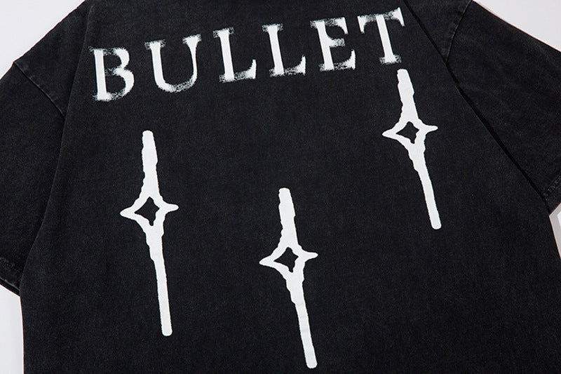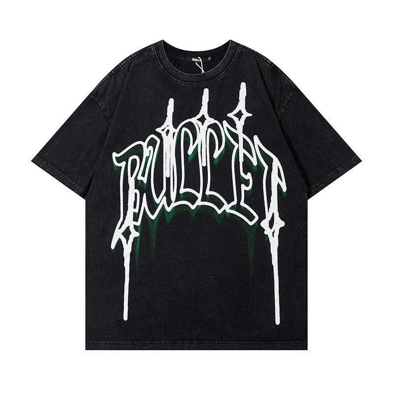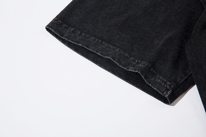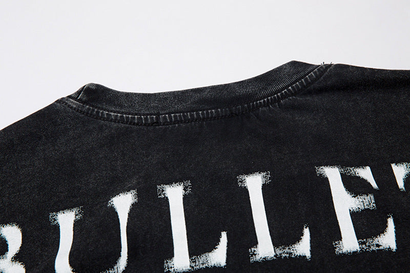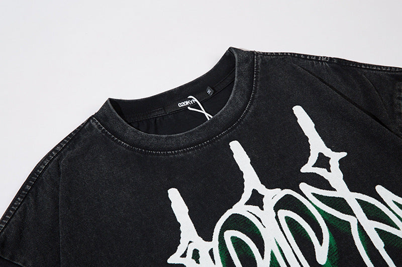 American Retro Hip Hop Washed Old Big Letter Graffiti Short Sleeve Men's Clothing