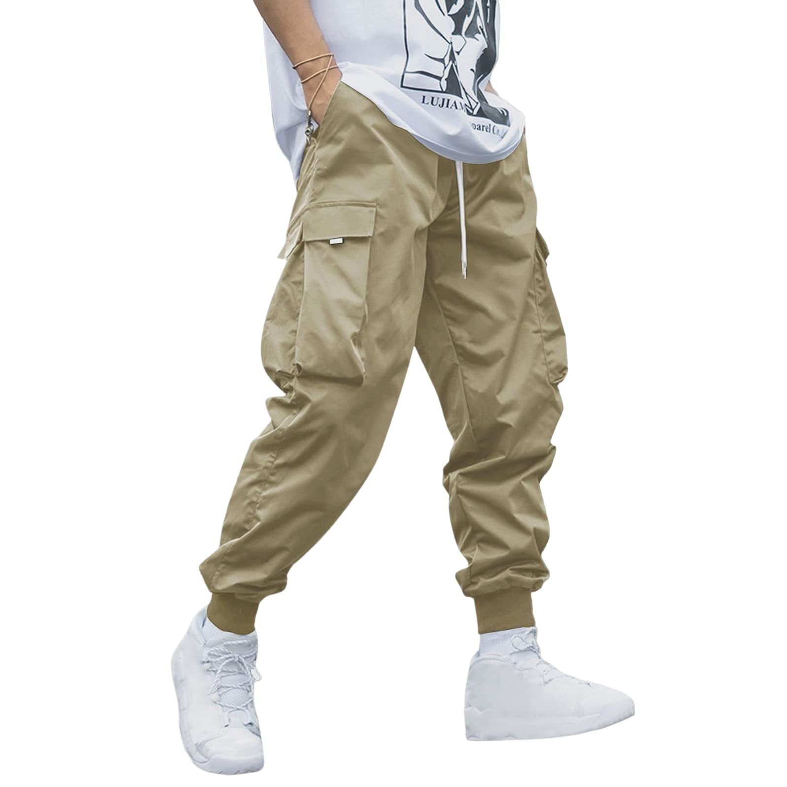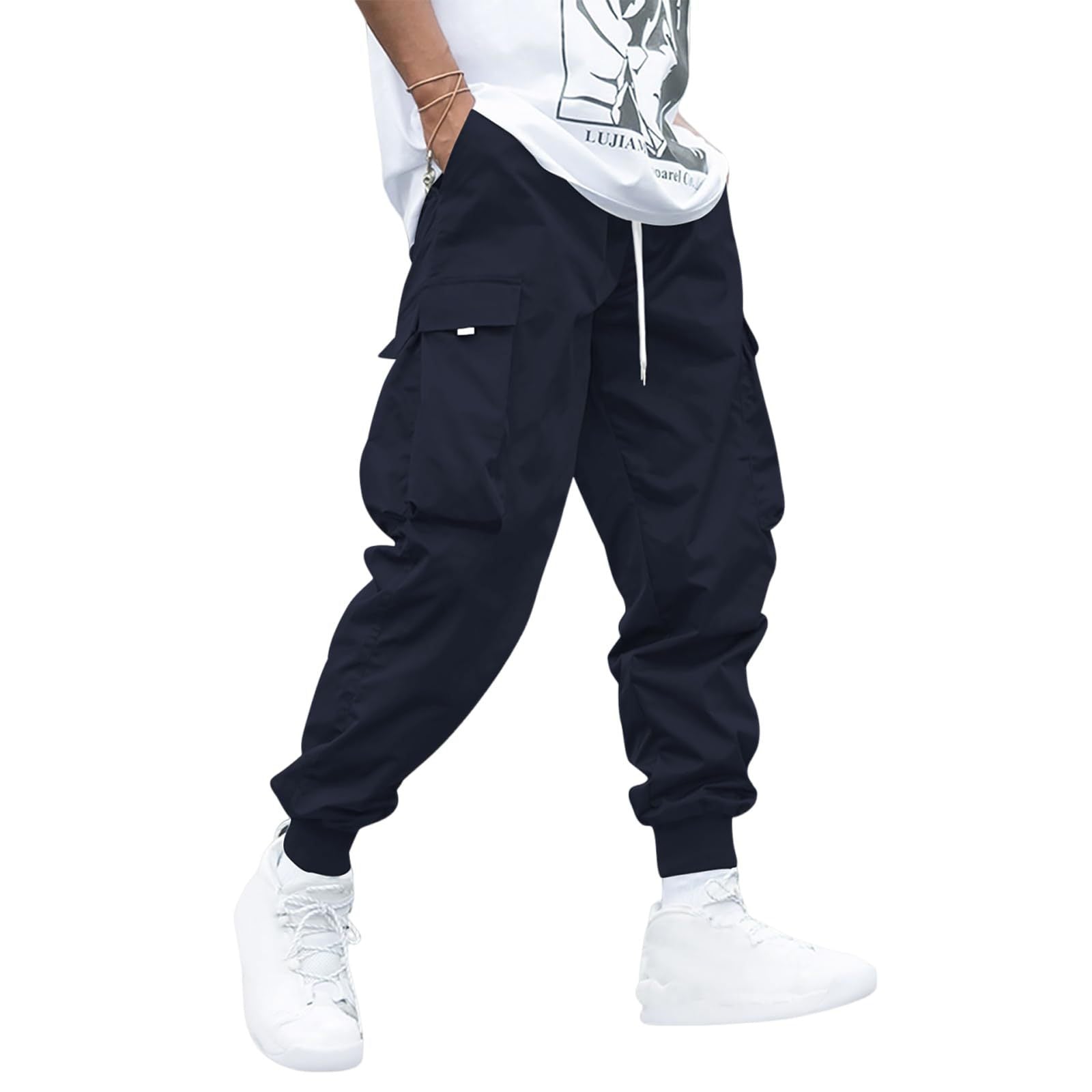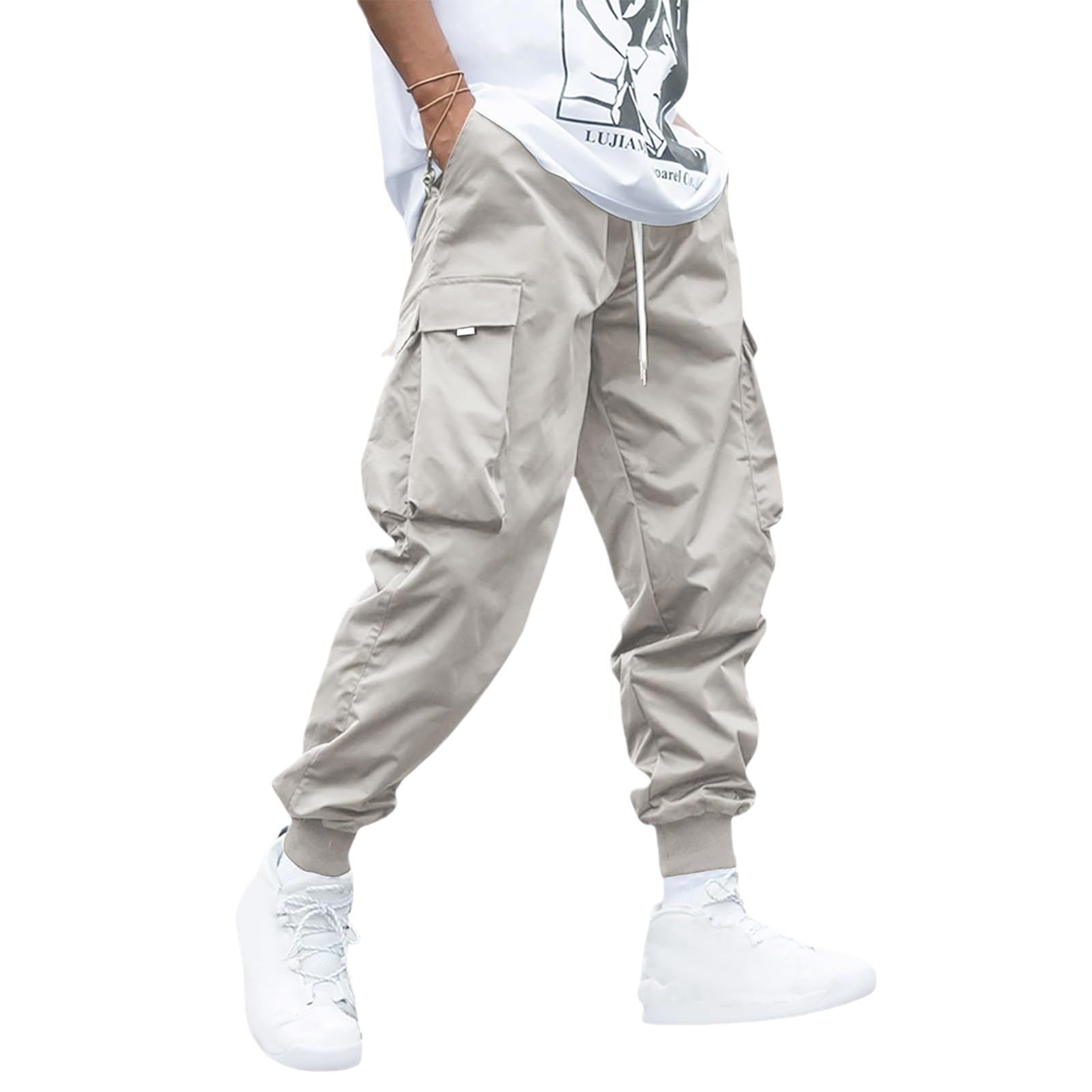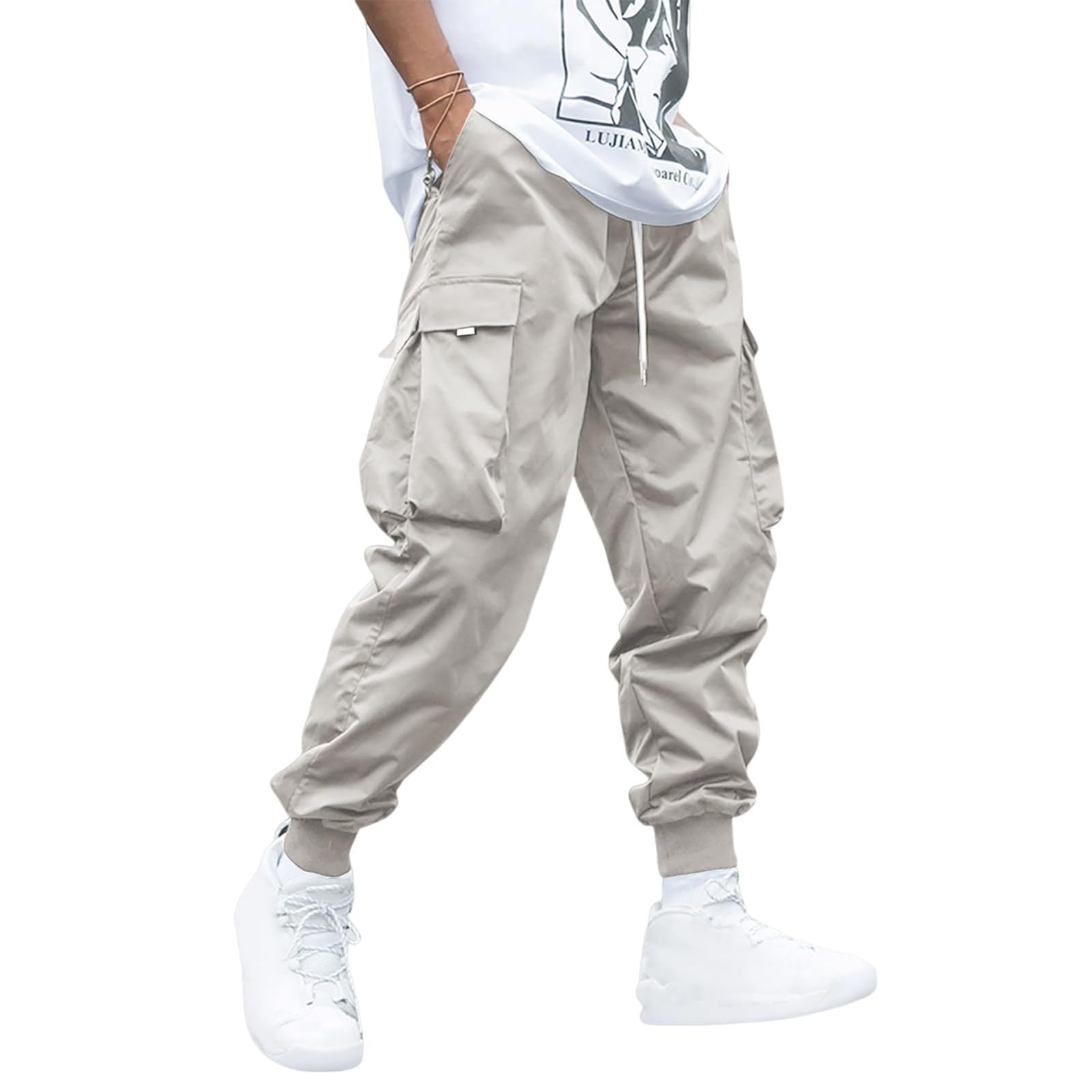 Men's Flip Pocket Drawstring Technology Cargo Pants Sports Elastic Jogging Casual Pants