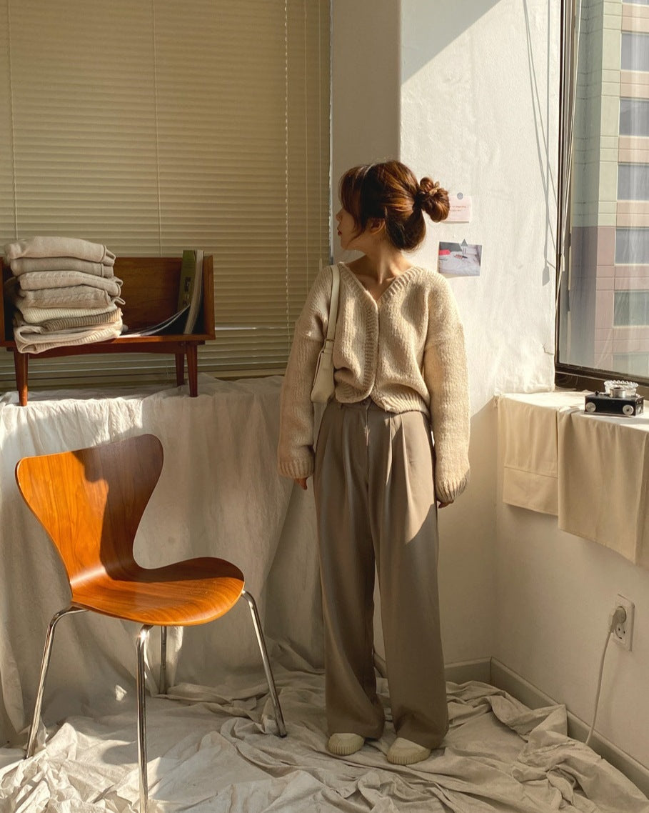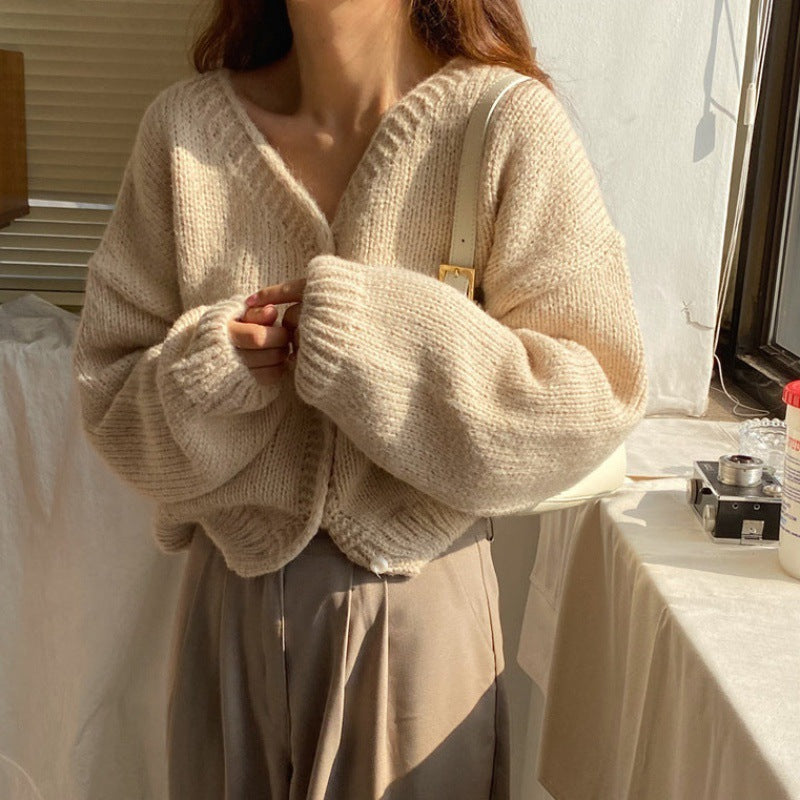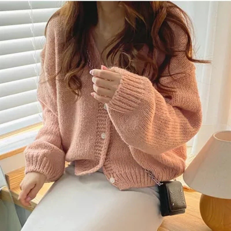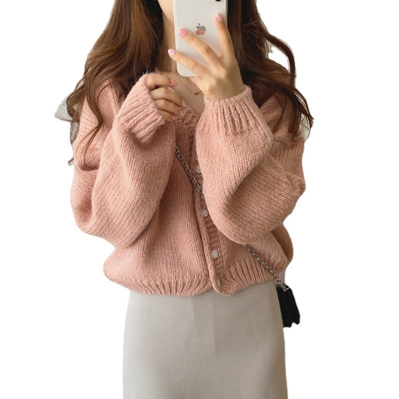 Women's Round Neck Single-breasted Loose Long-sleeved Knitted Sweater